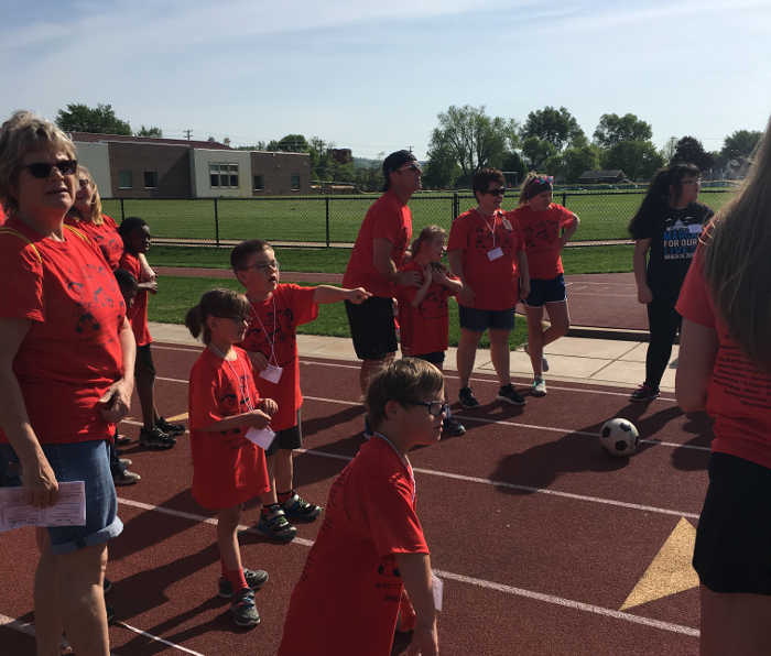 Lining up for the soccer kick with Abby and Logan.