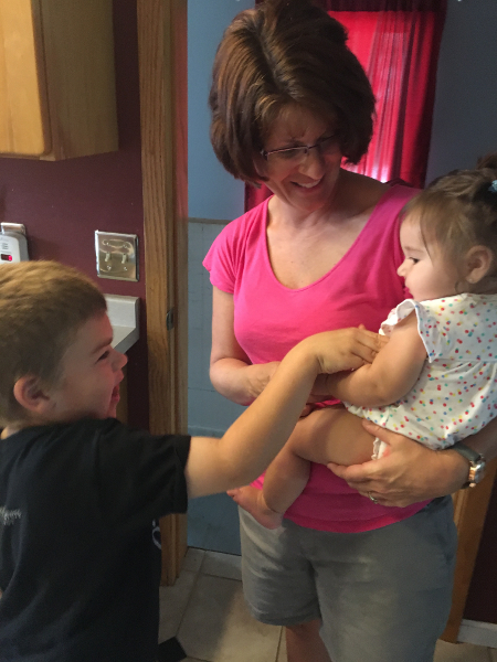 In non-sad news, I tried out my remote control boat I got at a garage sale, I went to the library with Mommy, I made muffins with Mommy and Sawyer, and we spent some time with Angie and her grand-daughter Delilah.