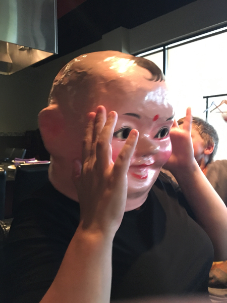 After the game we went out for supper with Freya, Kara, and Josh at the place where the guy makes the volcano out of an onion.