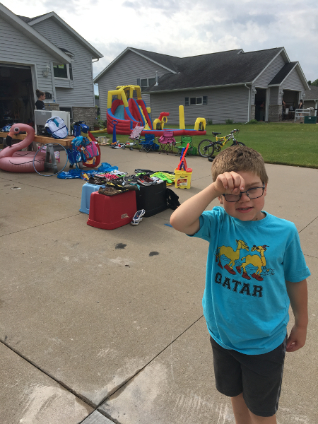 Friday morning, Mom and I went to some garage sales. And in the afternoon, my friend Atticus came over with his mom and dad and little sister. Daddy and Mommy were too busy talking to take pictures of that.