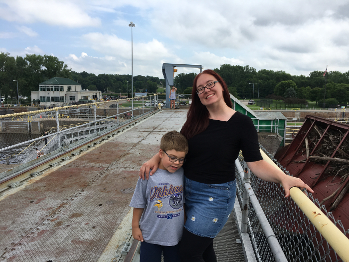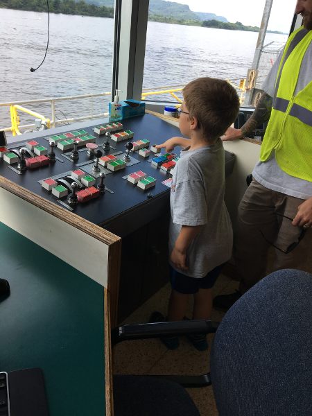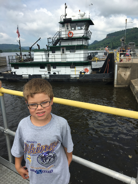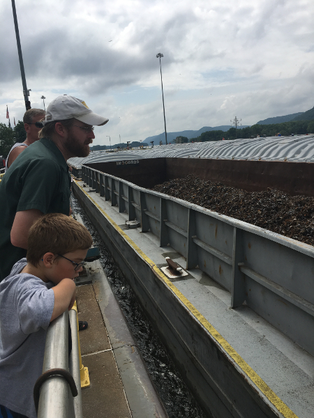 Saturday morning we went to an open house at Lock and Dam 6. Normally we can't even get close to the buildings at the locks, but this time the gates and all the doors were open. We saw some Coast Guard boats and we got to wander all over the lock and the dam. It was really cool. And then we got lucky and a barge came in while we were there.