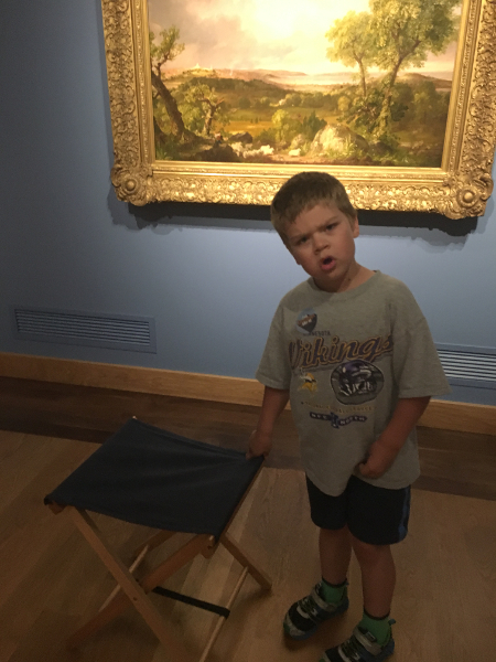 After the lock, we had some lunch and went to the art museum. I looked at some paintings and did a craft project with Mommy. Daddy took a long time looking at all the pictures.