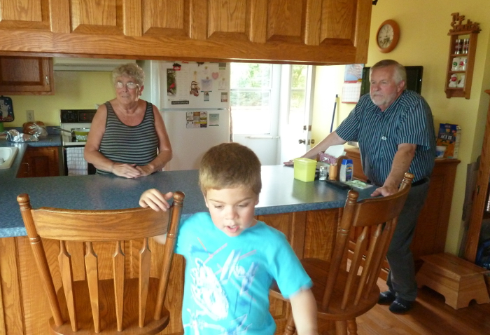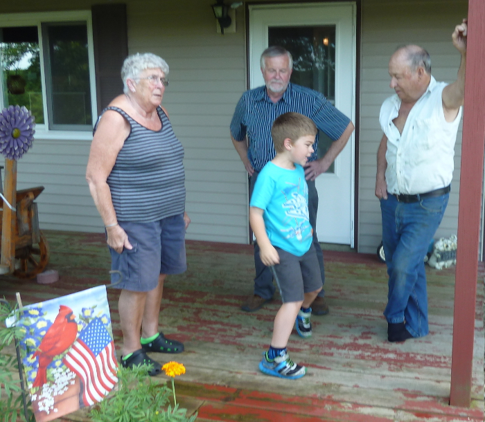 Talking on the porch with Grandpa, Janice, and Jerry.
