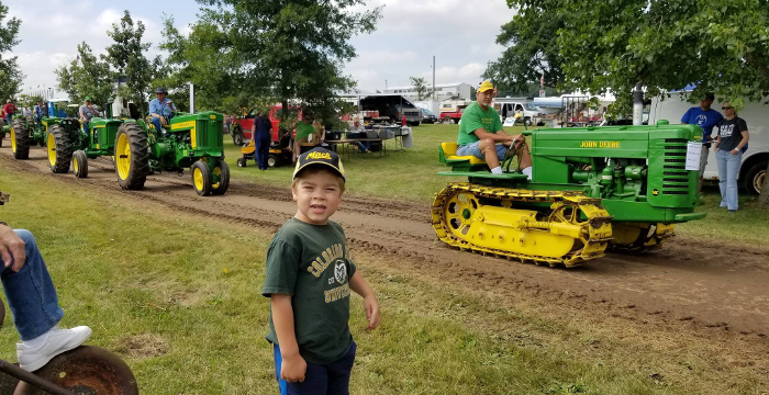 On Saturday I went to a machinery show with Grandpa Al, Uncle David, and Uncle John. We saw a lot of tractors, and some cool trains - it was lots of fun!