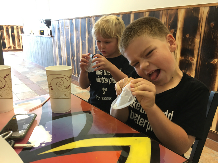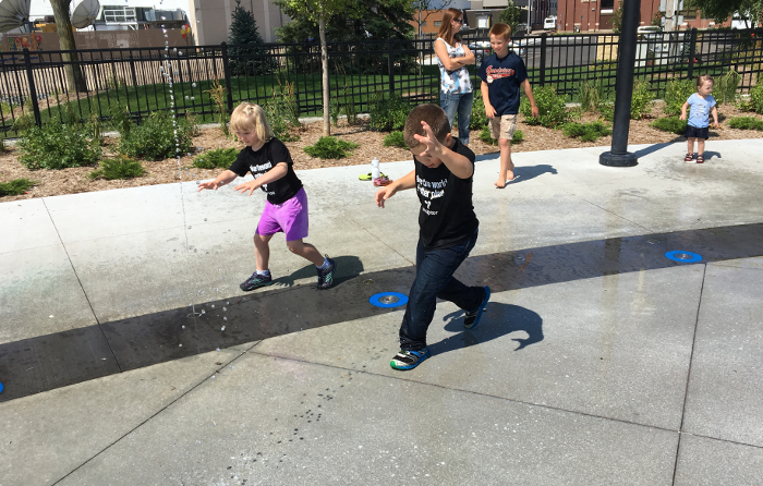 Freya and Kara came down for the farmer's market on Saturday. GG came over to see us as well. Mom and Kara were too busy selling all the baked goods to play, so Freya and I went to run in the fountain.