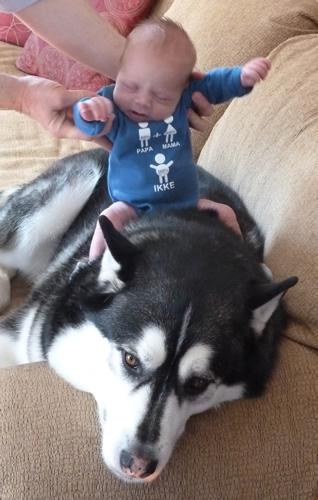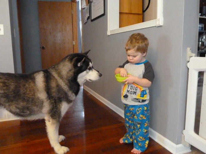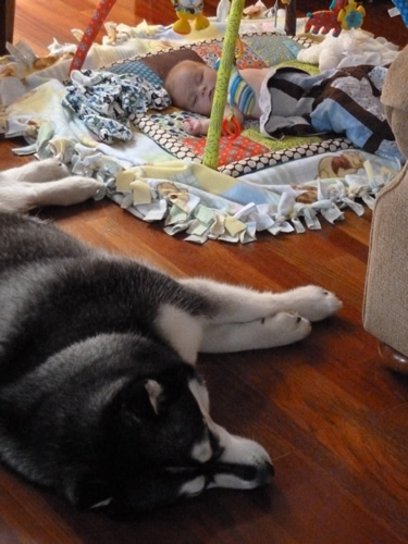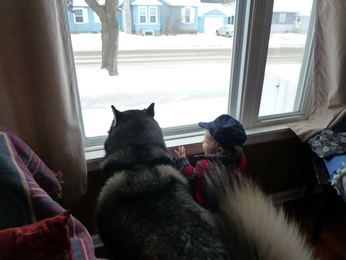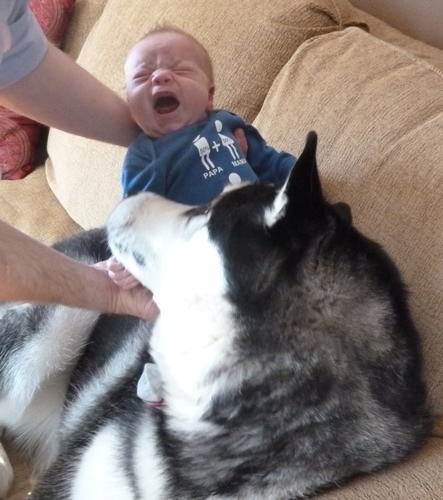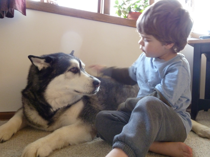 Duke protected us from squirrels and rabbits, and every dog that passed by - especially Buckles, the lab who menaced the neighborhood by wandering loose and shitting on everyone's yard. Duke's bark would scare just about anyone who came to the door, but he was harmless. One time when Duke yawned, Henry reached his hand up into those massive teeth - and Duke finished yawning but did not close his mouth or move until Henry's hand was out of the way.
