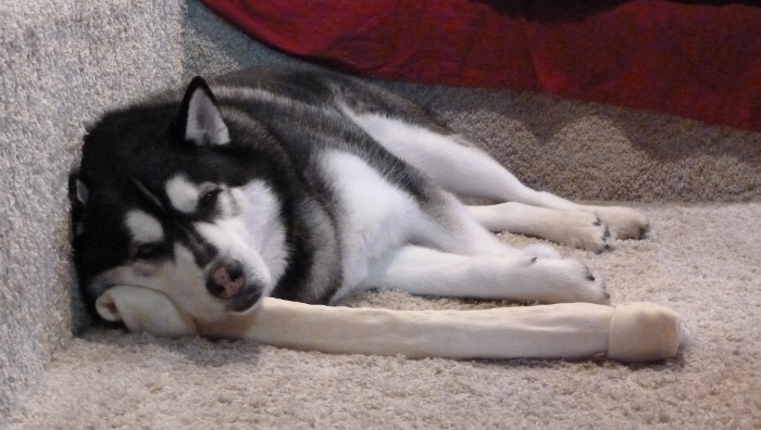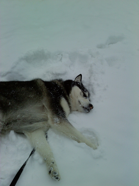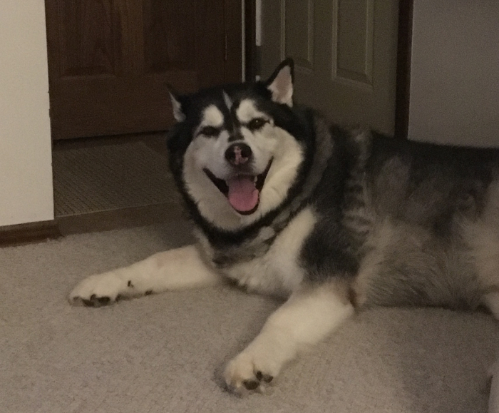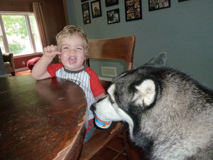 Duke made us laugh with all the crazy things he would eat if opportunity presented itself: a pizza cooling in the window; sticks of butter; a loaf of challah bread; a package of English muffins; slices of bread left on the counter for even a moment; a bag of lemon drops; and even a burrito buried in two feet of snow on the side of the road that he somehow smelled and dug out despite the temperature being below zero. How he would beg for food any time someone was eating. How he would lie flat on the floor like a furry crocodile when we were in the kitchen, waiting for a morsel to hit the ground. How much he loved ice cream. Have you ever seen a dog get brain freeze?