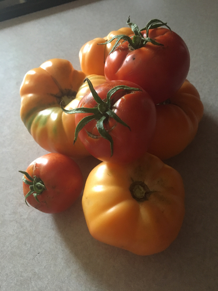 And Mommy started harvesting some of the many tomatoes growing in our garden.