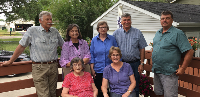 Back row: Todd, Rhonda, Grandma Wynne, David, Bradley; front row: Great-grandma Darlene and Jenn.