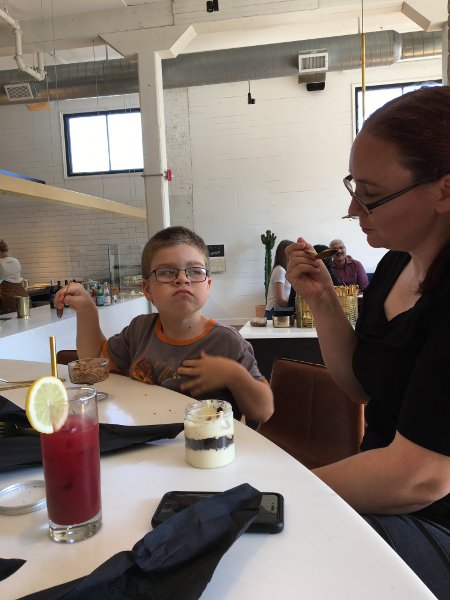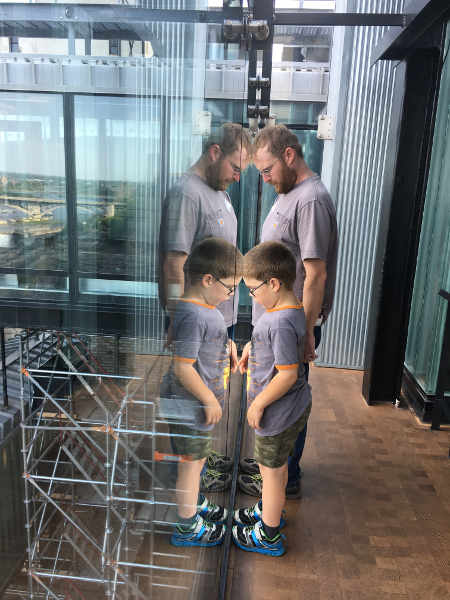 Wednesday morning we started out by going to Lock and Dam No.1. Then we went to Fort Snelling, or "Old HQ" as I called it. We played baseball and watched some soldiers fire guns and a cannon. We stopped at the house for a little lunch, then went downtown to the Mill City Museum, which is in an old flour mill. We had a fun elevator ride, saw where all the grain came in, and looked at the city from way up high. When we finished at the museum we went to a dessert restaurant that Mommy's friend Christina has. We had some really good ice cream and all of the spoons and forks were gold!