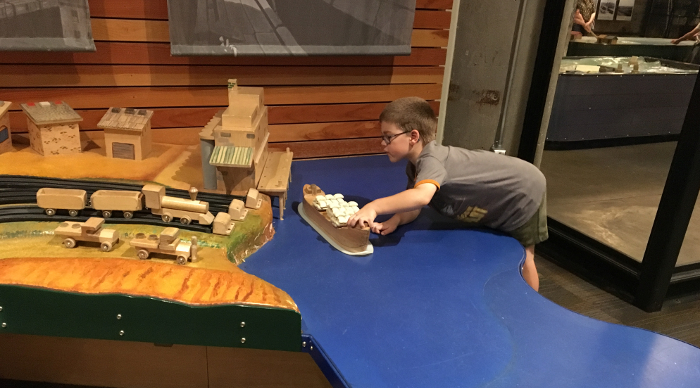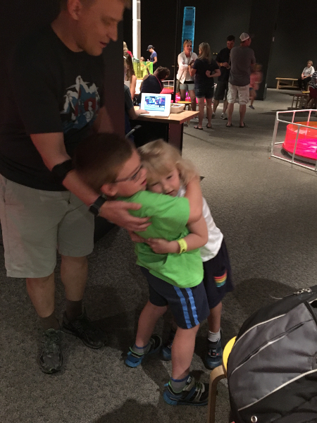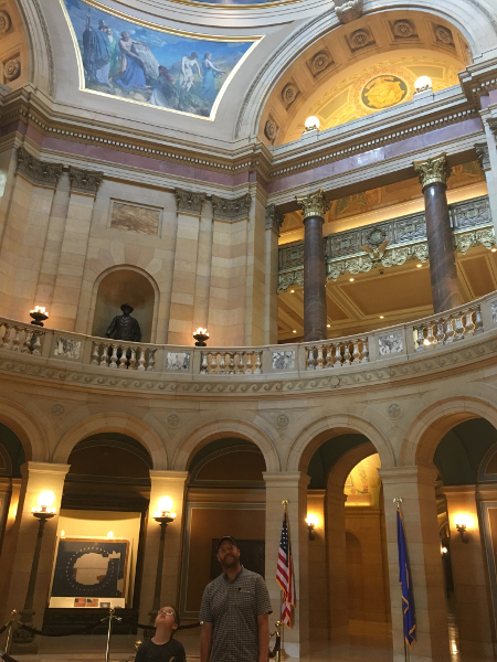Tuesday we went to the history center, which is a really cool building so big it has an airplane inside it! And a grain elevator! And a mine! I had a lot of fun with the exhibits for kids - not so much looking at those for adults. When we were done with that, we went to see Minnehaha Falls, and Daddy and I walked in the woods for a while.