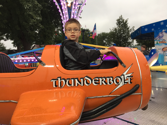 Friday morning we went to the State Fair! It was rainy the whole day, but at least it wasn't hot and no one got sunburned! We had waffles and pickles and ice cream and pizza and mini donuts and we went on rides and looked at tractors and we got soaked during a downpour that happened when we were about as far away from a building as we could get.