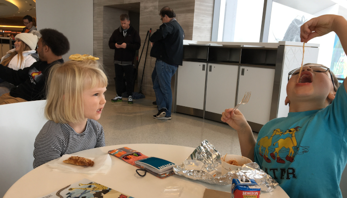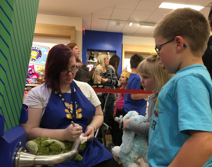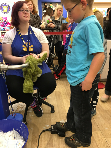 After BrickFest we went to meet Freya, Josh, and Kara for lunch. And then we went to Build-A-Bear - where I got a new stuffy of a brachiosaurus! Thanks, Auntie Kara and Uncle Josh!
