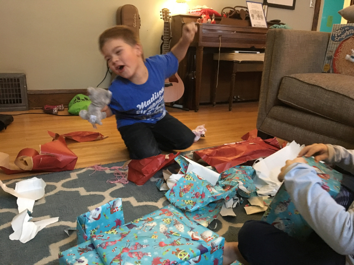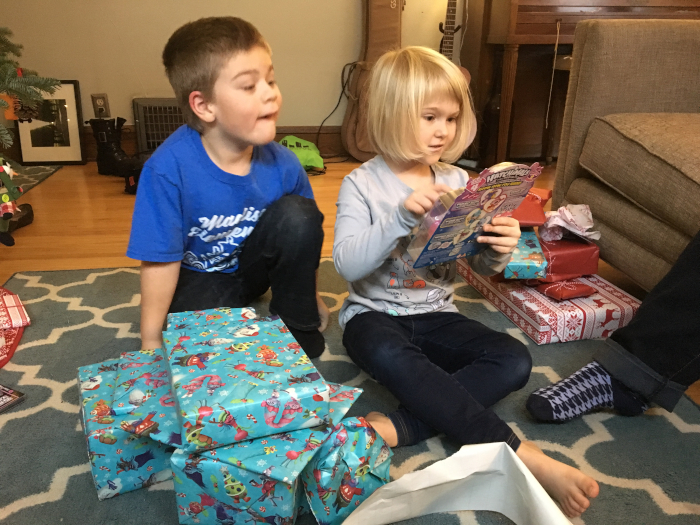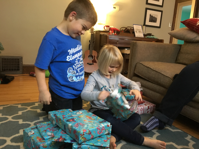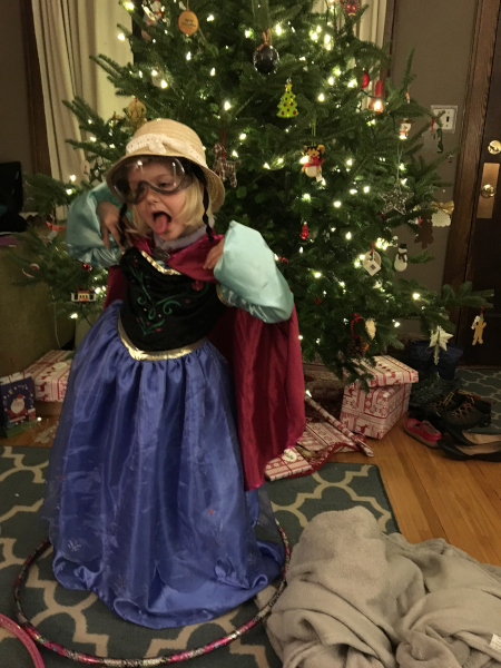 After all the fun at the market, we went back to Freya's and opened presents. And then we read some books and put on a show for the grown-ups, which included singing, dancing, hula hoops, costumes, magic, and a lot of laughing and screaming.