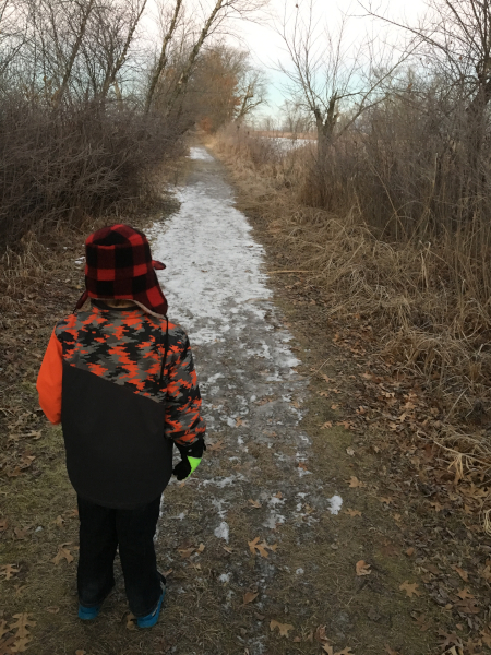 After that adventure, stopped at a wildlife preserve near our house and looked around. It was cold and there was no one around because it was 6 AM on a Saturday. We walked around a little, but my hands were turning to ice so we did not go far.