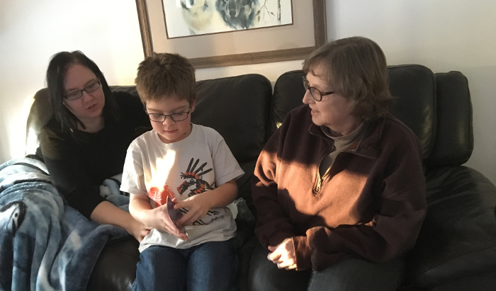 Opening an early birthday card from Grandma Wynne and Grandpa Al - so I can get my Zoo membership for my birthday adventure next weekend!