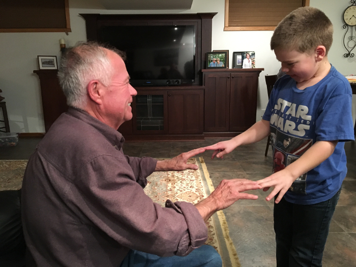 Learning a new game with Bob - where we tried to slap each other's hands.