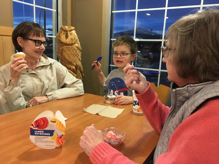 Eating victory ice cream after the project fair - with my grandmas.