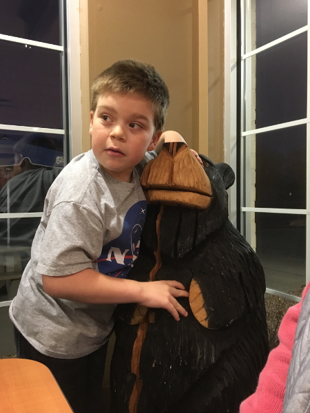 Giving my bear friend a hug.