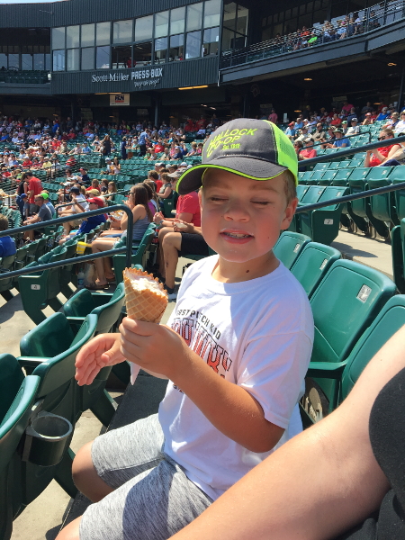 Thursday morning we left home at 5:00 AM. Mom and Dad didn't tell me we were going to a baseball game until we got to the stadium.