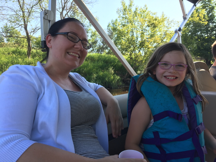 On the boat with Mom and Bay. It was hot.