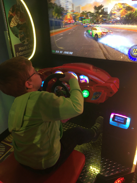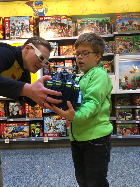 Sunday we went on an adventure. We were going to buy me a new winter coat, but the place where we wanted to get it didn't have any in the store and we couldn't find any we liked at other places. So we looked at LEGO instead and stopped to play games at an arcade.