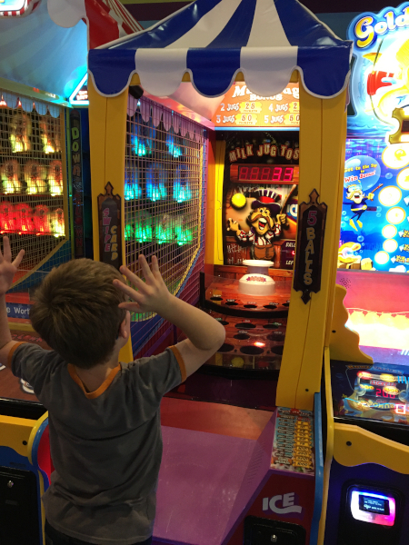 When we were going home, we met Daddy, Grandpa Al, and Grandma Wynne, along the way. And I got to play some arcade games with Grandpa Al.
