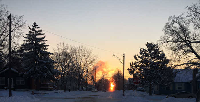 This week we had some really cold weather. You can't really take a picture of the cold, but Daddy got a good shot of the sunrise while we were waiting for the bus in -16 degrees.