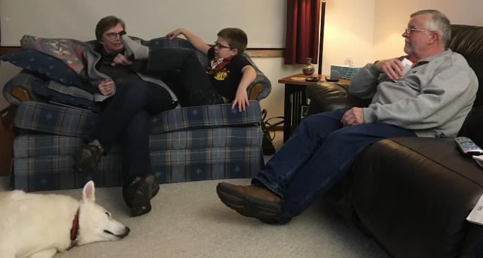 Sunday we stayed home, except for getting some groceries. We played Settlers of Catan and read some books and watched cartoons.