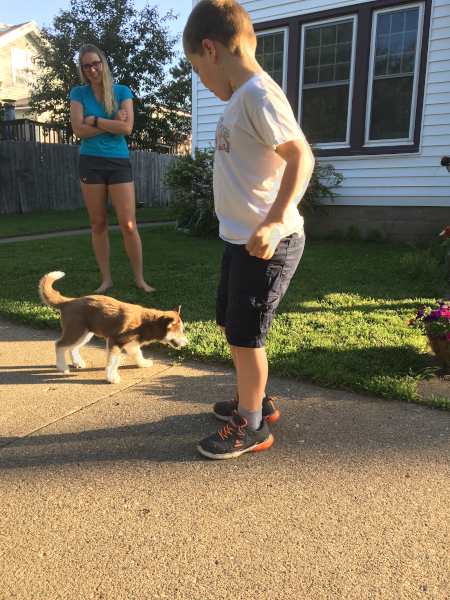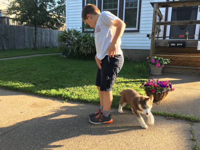 Daddy and I have been going for walks in the morning - and sometimes we are lucky and get to see the new puppy across the street. Her name is Juliet.