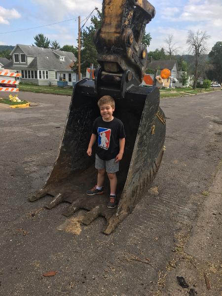 Work on our street failed to happen - but there is an excavator parked outside now. And we got to watch some stumps get chewed up.
