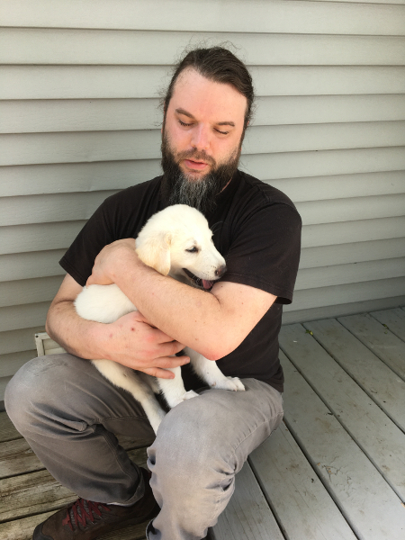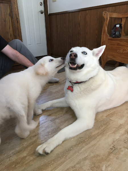 Saturday we went to introduce Indy to Uncle Neil and Loki. That went well: Loki was really gentle to Indy and she didn't seem at all jealous of the little pup.