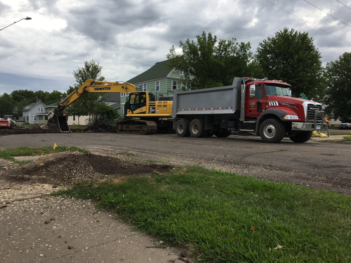 Digging up the street.