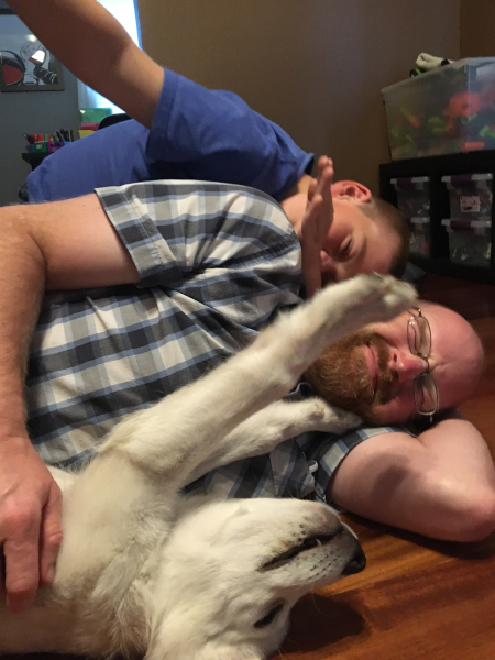 Sleeping by Dad's shoes, waiting for him to come home from work.