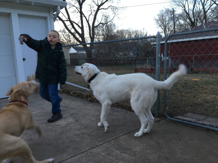 Tuesday we went to swap presents with Kara and both sets of grandparents. We also got to go see Indy for a little bit - and he is huge!