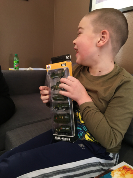 Daddy had to work on Wednesday, but I opened a present when he was home for lunch.