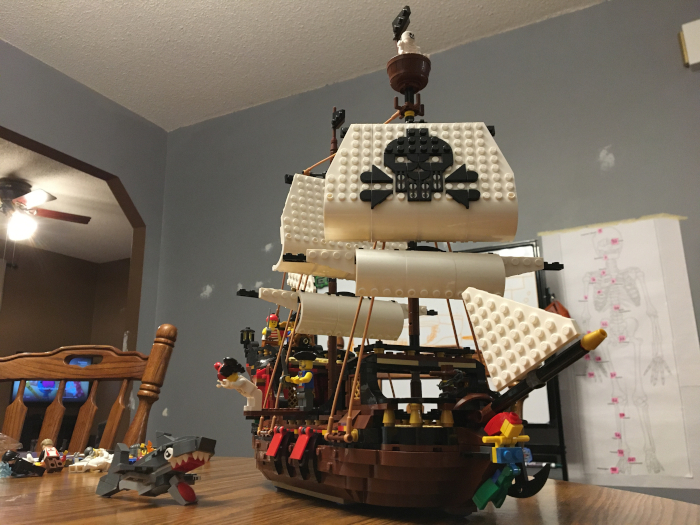 On Saturday, Mom sharpened all my pencils with my new electric pencil sharpener, Dad and I built the pirate ship, and we watched some Grizzly and the Lemmings.