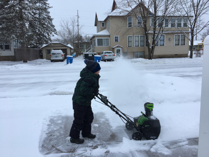 Back home on Sunday, we had some snow to clear. I got to use the little snowblower that Grandpa gave me because he no longer needs it.