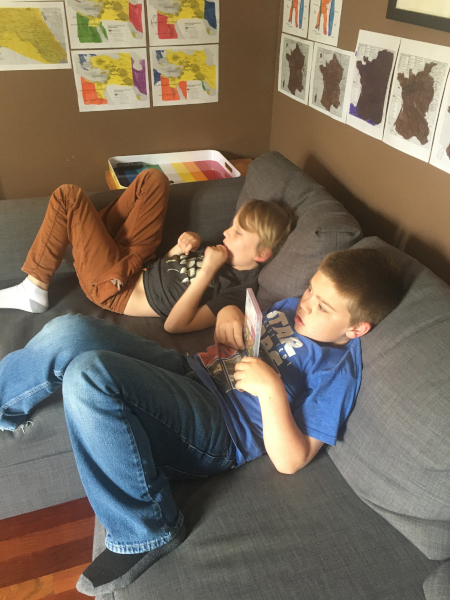 Mom and I worked on math, science, spelling, language arts, and of course history. Dad and I mostly did batting practice for gym class, and we read to each other. We also worked on Rhode Island for the state project - it was not the most exciting state so far. I wonder why they were the last colony to ratify the Constitution? Did they think they were going to get a better offer?