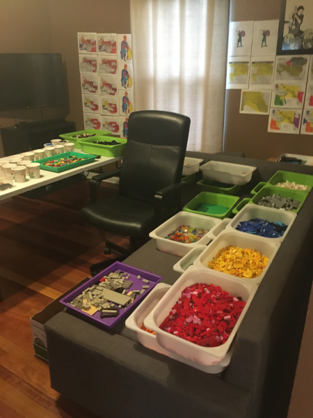 While we were away on Saturday, Mom cleaned the house - and she did a lot of LEGO sorting. I mean, a lot of LEGO sorting. She finished on Sunday, and Dad and I moved the tubs back downstairs and labeled the tubs. Thanks, Mom!