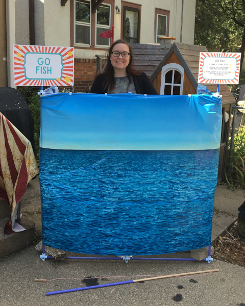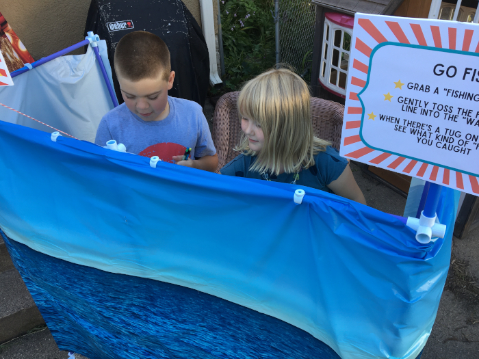 Mom working the fishing booth.