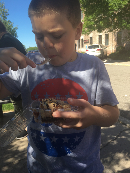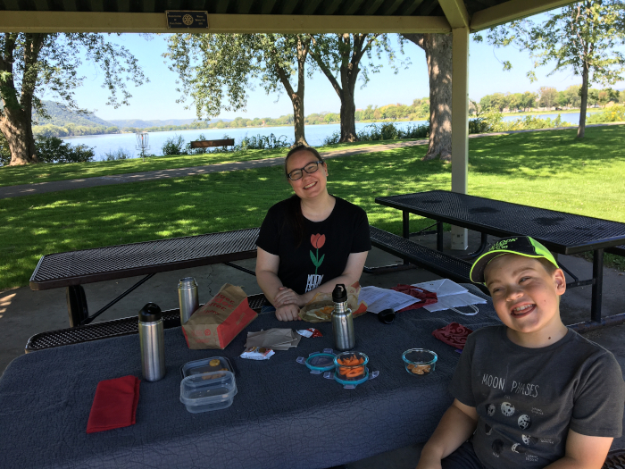 This week we had a picnic by the lake on Monday. Daddy went to get his third COVID shot, and after our picnic we had Blizzards from Dairy Queen.