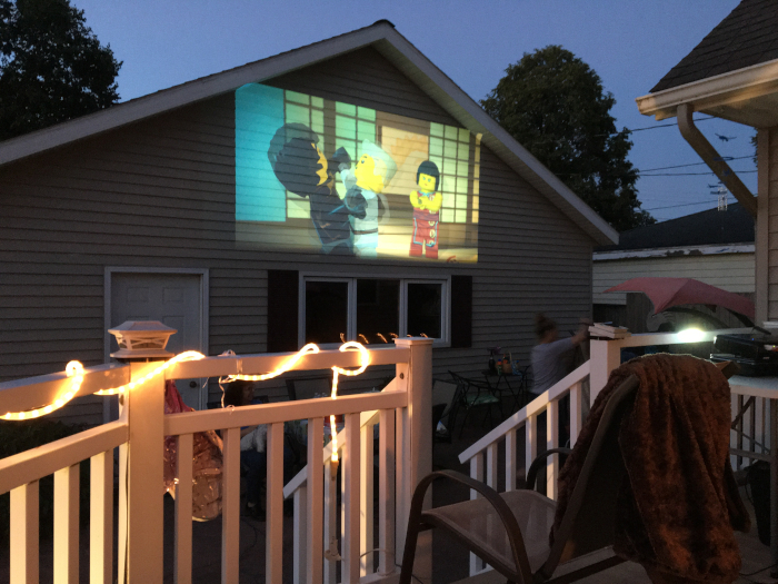 On Saturday our friend down the street invited us over to watch some movies on her garage (she has a projector). We had a good time, despite the bugs, and I discovered I love s'mores (after Mommy forced me to try one). I also made a new friend, Daniel, whose Grandma and Grandpa live just down the street from us.