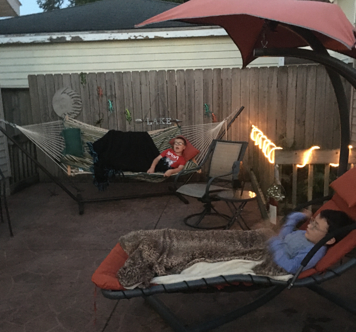 Testing out the hammock chair.
