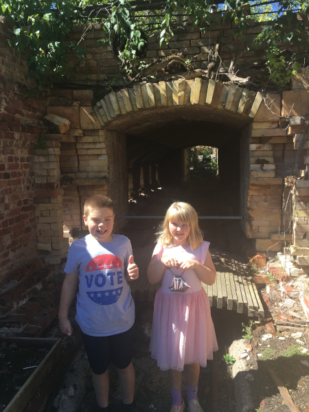 Exploring the kiln with Freya.