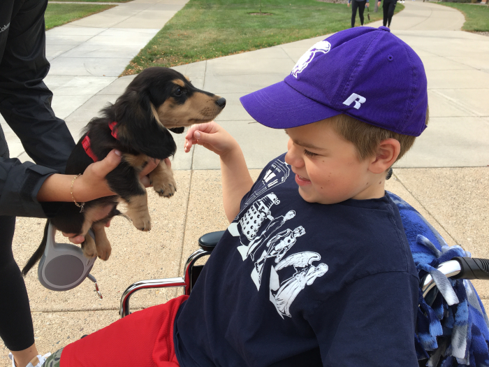 Not much going on this week. We went to get flu shots on campus, and we walked (well, I rolled). We saw a really cute little puppy while we were there, and we got some snacks.