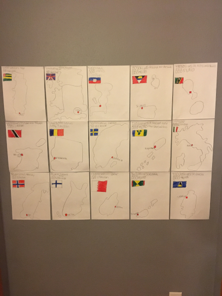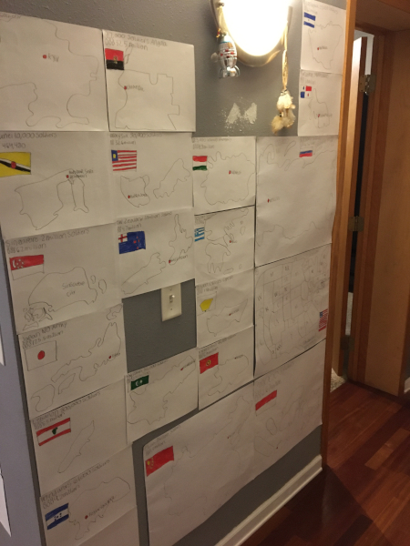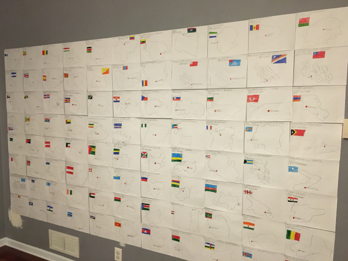 This week was all about maps and flags. I am covering the walls with my project to draw all the countries of the world and their flags. This week I did 167 countries. Here are the pictures: