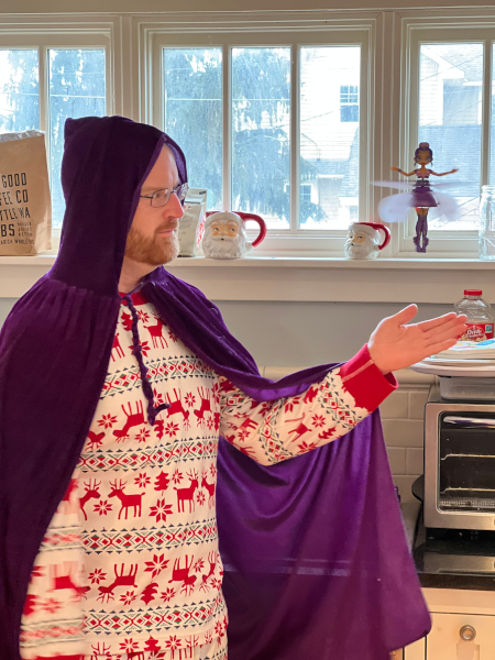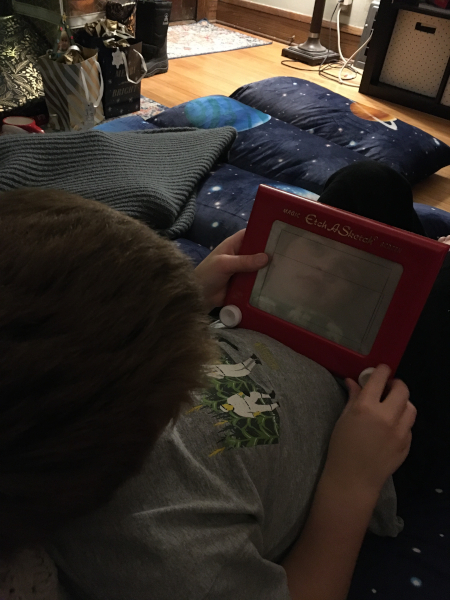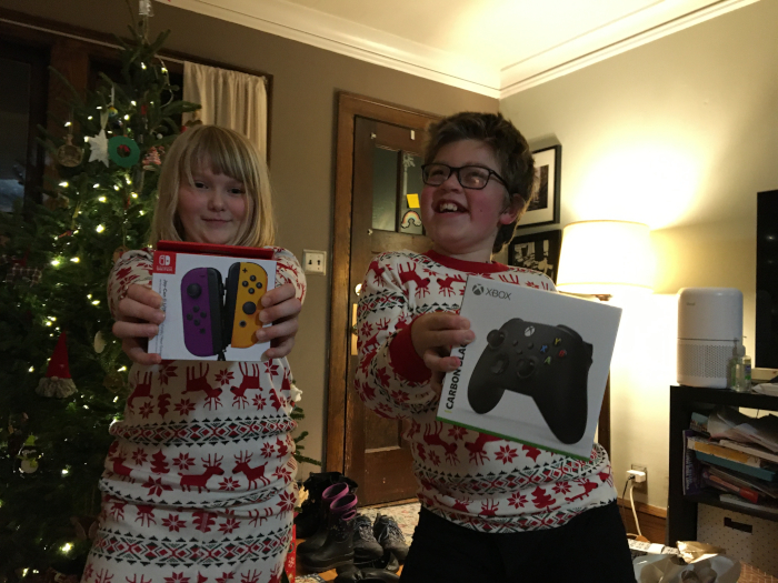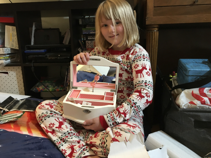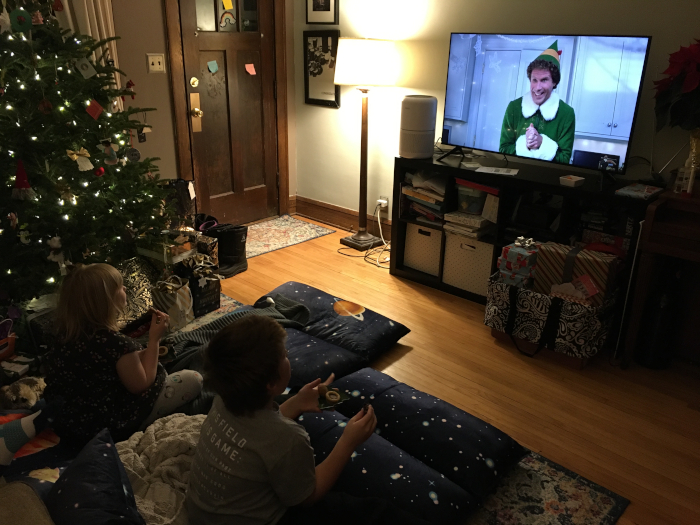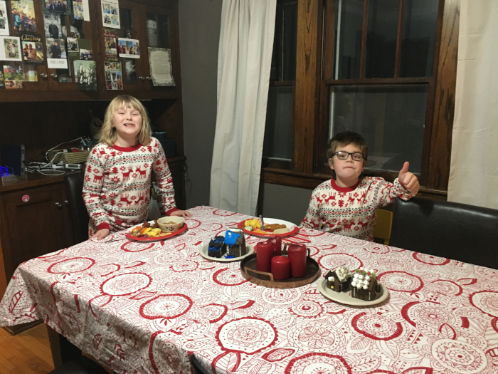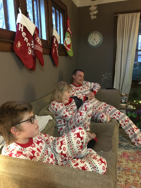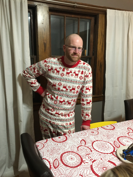 Friday we stayed home and played around. Dad got there around 4:00 PM, and we got the pajama party started, ate some food, and opened presents.