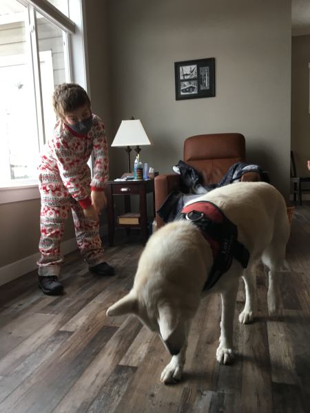 Playing with Loki - hiding her treat.