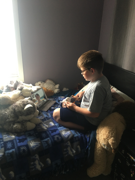 This week we spent some time outside since the weather was so nice. And I made a new friend. Audie is my age and he really likes history and geography. We talked on FaceTime a couple of times and we are planning to meet in person next week.